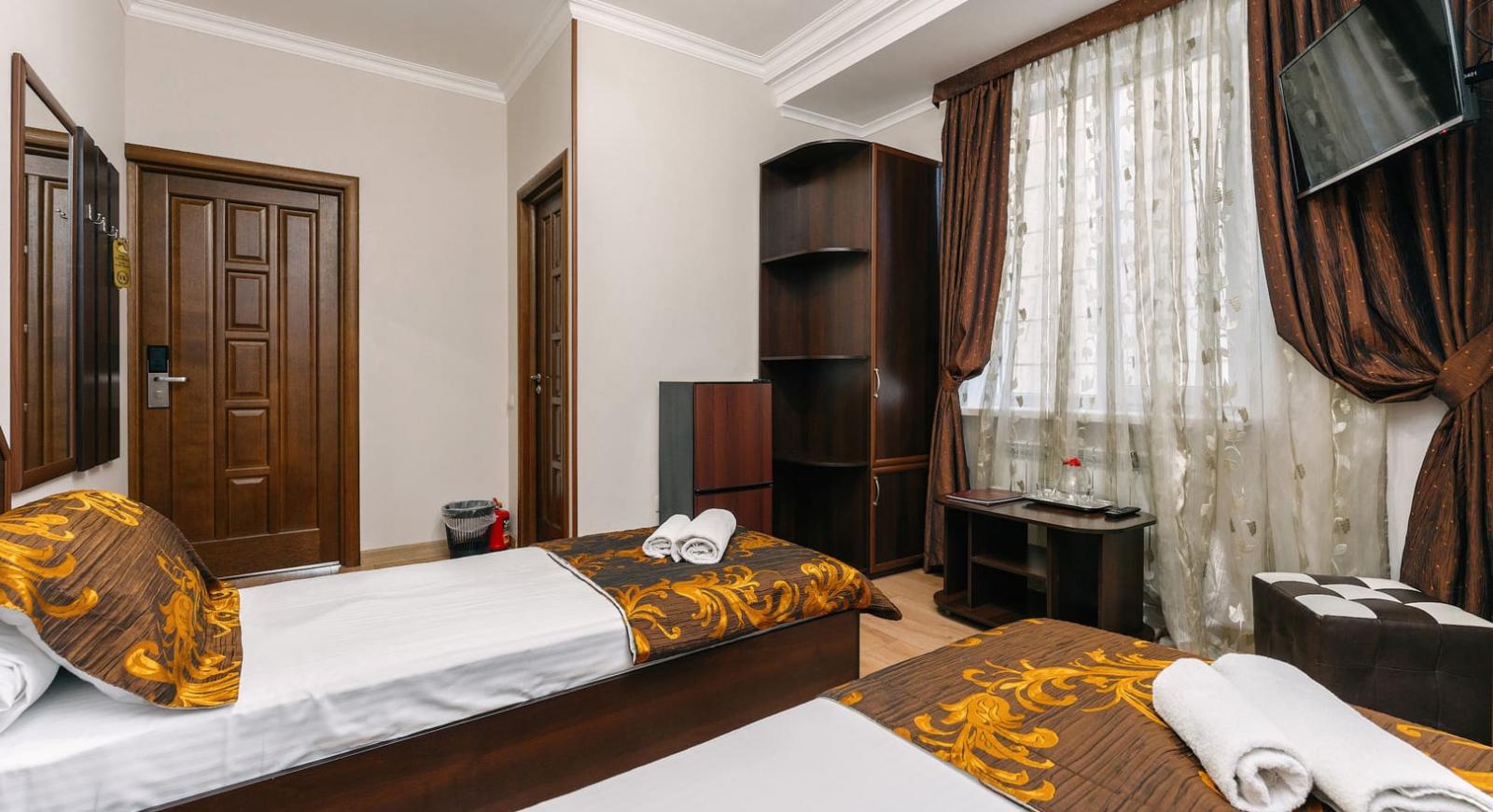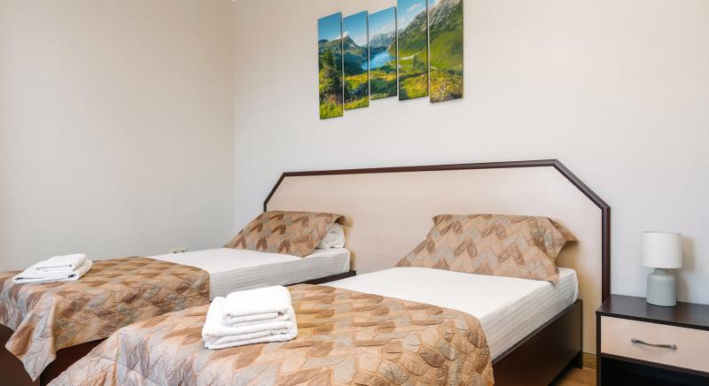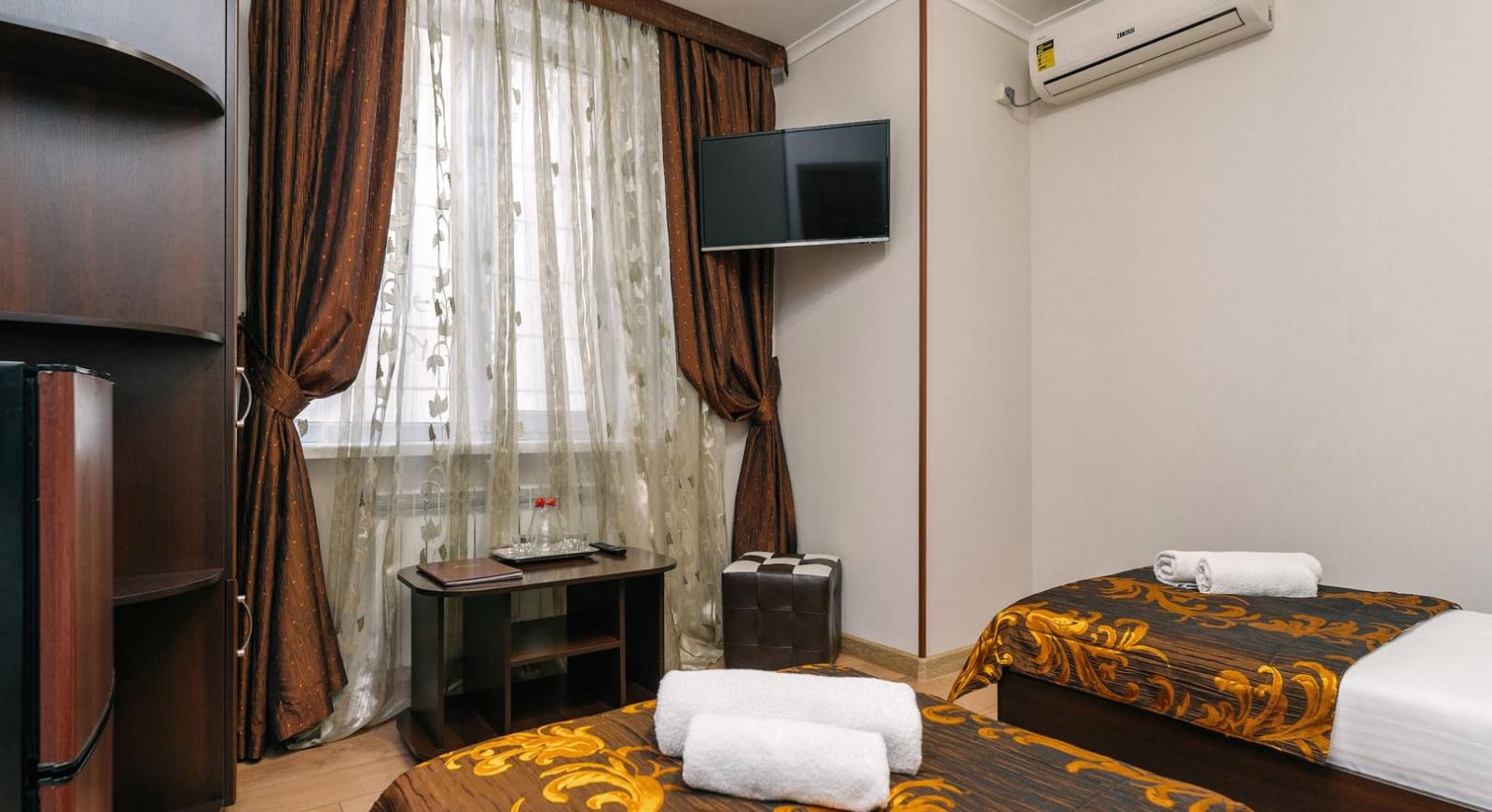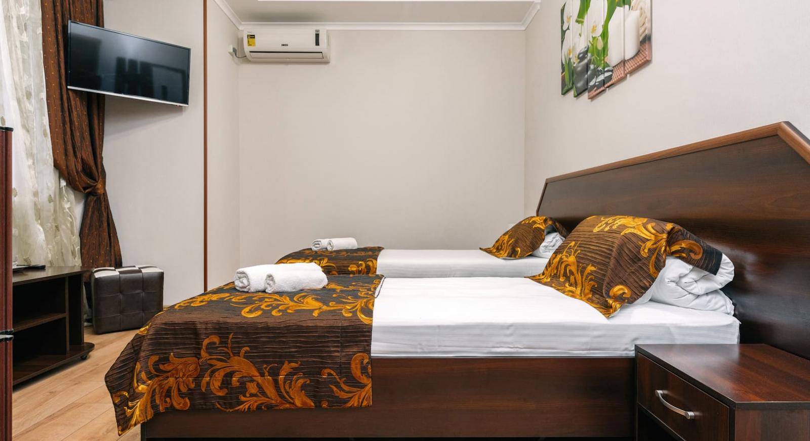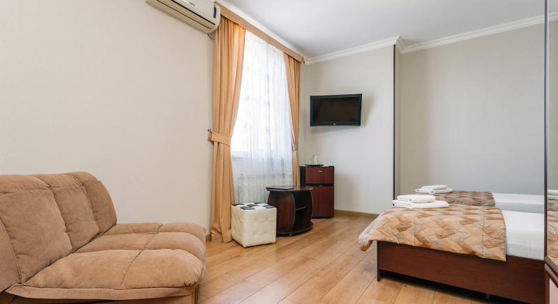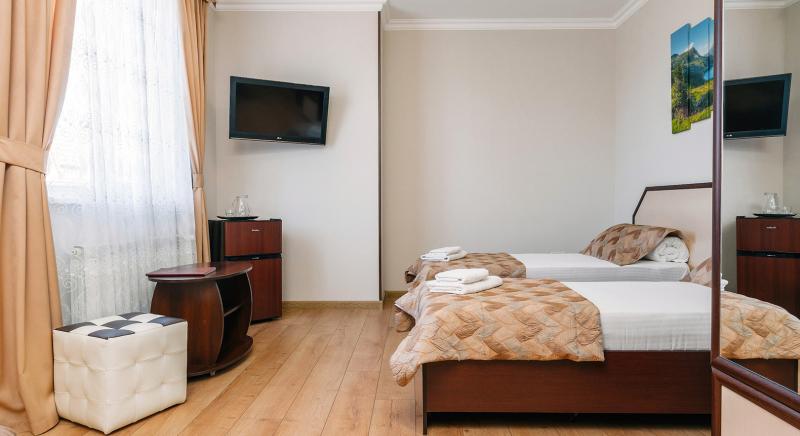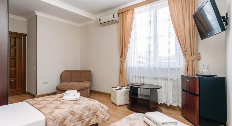 В современной обстановке номера со всеми удобствами мини-гостиницы Симферополя – две отдельные кровати.